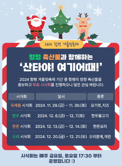 - 할인기간 : 2024. 11. 26.(화) ~ 12. 25.(수) / 축제 기간 중 평일