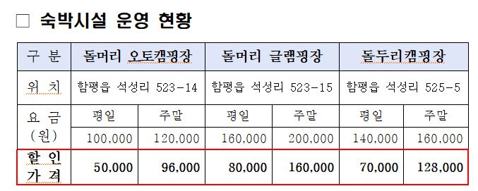 - 장소 : 돌머리 오토캠핑장(카라반), 글램핑장, 돌두리캠핑장
